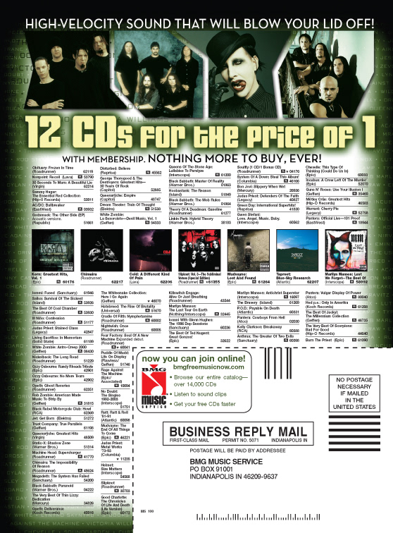 Print acquisition advertising for Bookspan, BMG Direct and Columbia House.